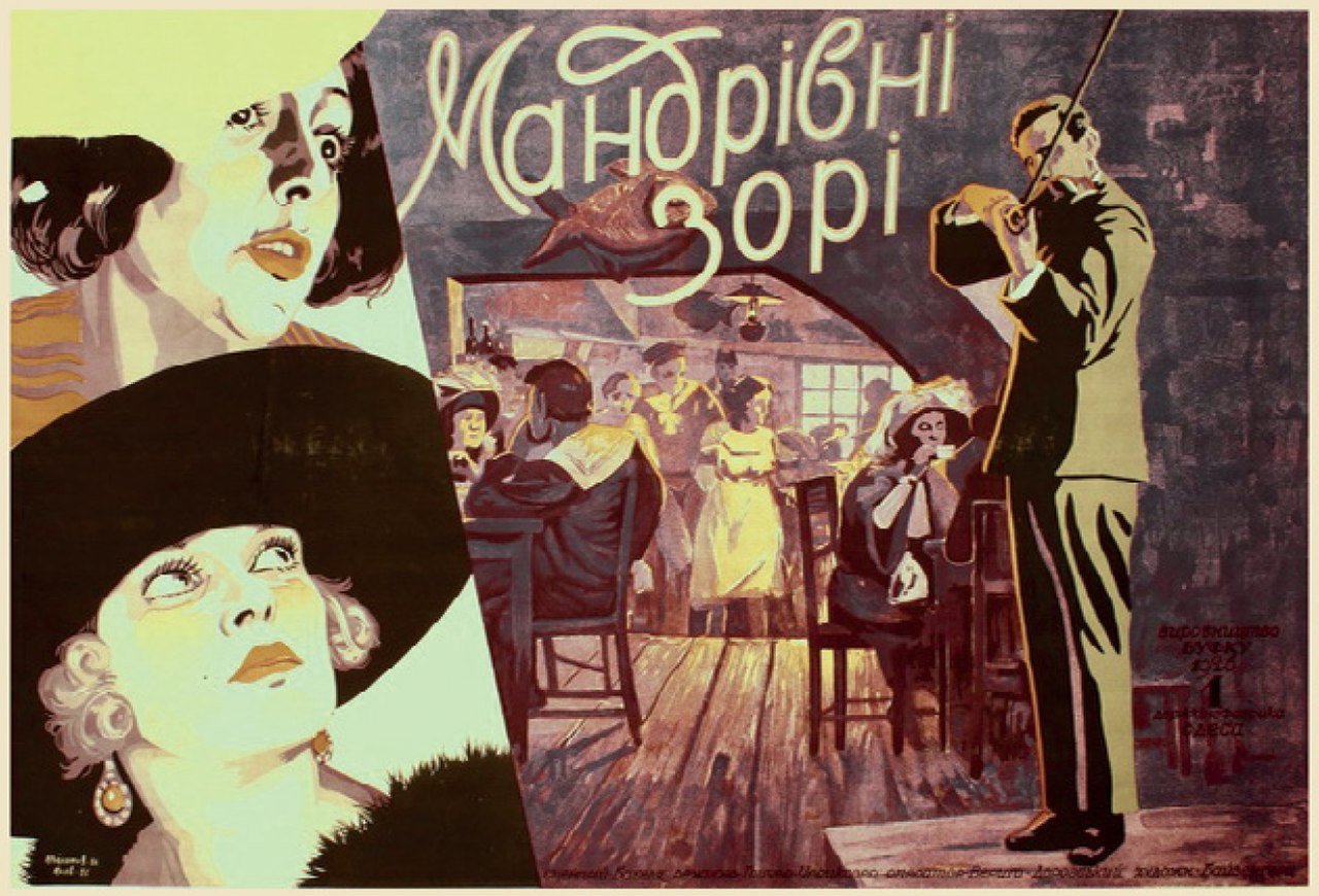 Ukrainian-language poster for the film “Mandrivni zori” by the unknown artist. Archives of the VUFKU